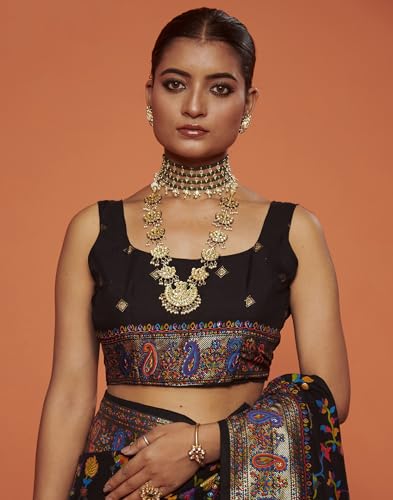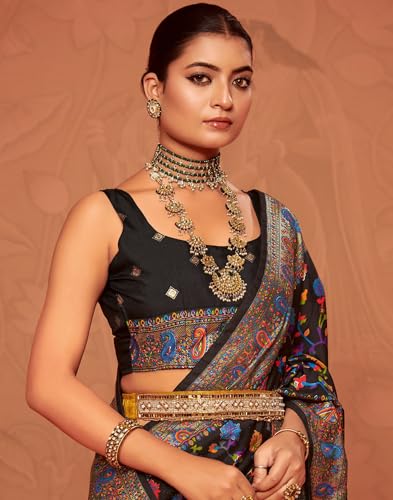 Womanista Women's Plain Poly Georgette Ready to Wear Pocket Saree