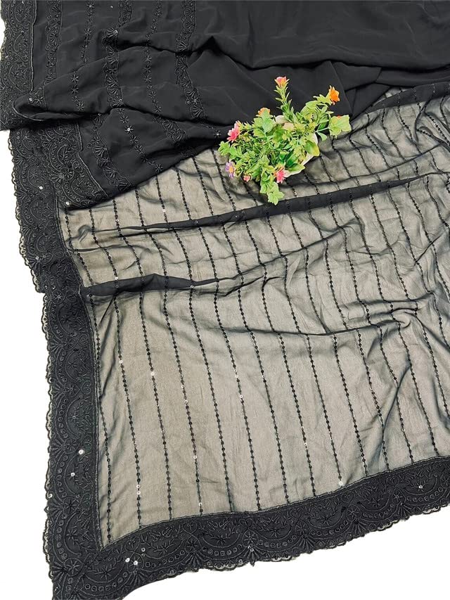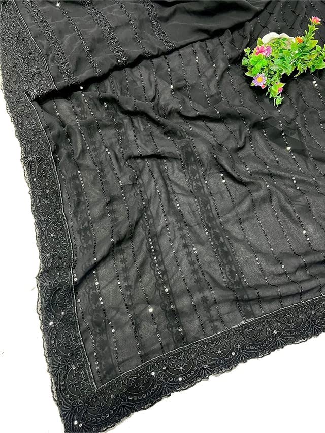 SIRIL Women's Georgette Printed Zari Striped Ready to Wear One Minute Pre Pleated Saree With Unstitched Blouse Piece