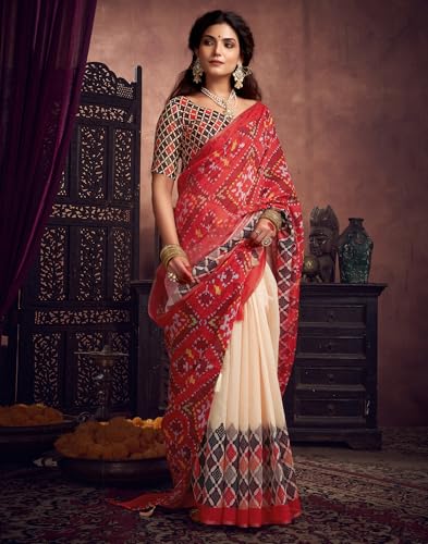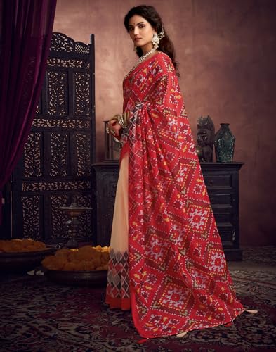 SIRIL Women's Georgette Printed Saree With Unstitched Blouse Piece Combo Pack Of 2