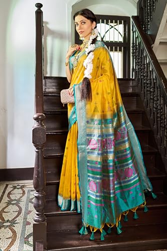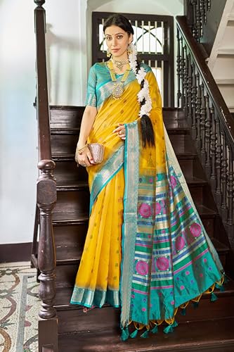 SIRIL Women's Printed Organza Saree with Unstitched Blouse Piece