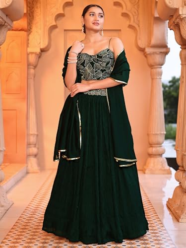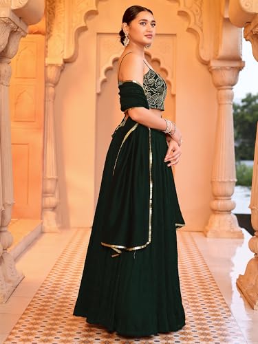 Zeel Clothing Women's Cotton Thread Sequins Work Embroidery Soft Net Readymade Lehenga Choli Set With Dupatta (Nfh-2204-Yellow-Women-Lehenga-Choli-Latest; Free Size)