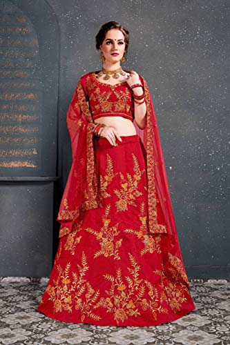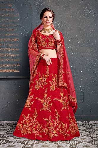 Zeel Clothing Women's Net Embroidered Semi-Stitched Bridal New Lehenga Choli with Dupatta (7315-Peach-Green-Wedding-Latest-Lehenga; Free Size)
