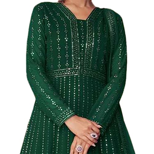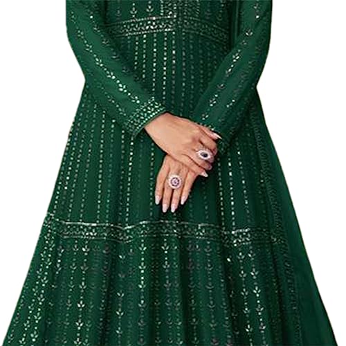 Madhuram Women's Sartin Patta Gown for Women Ethnic with Digital Print and Embroidery Work Long Gown(M-2463)