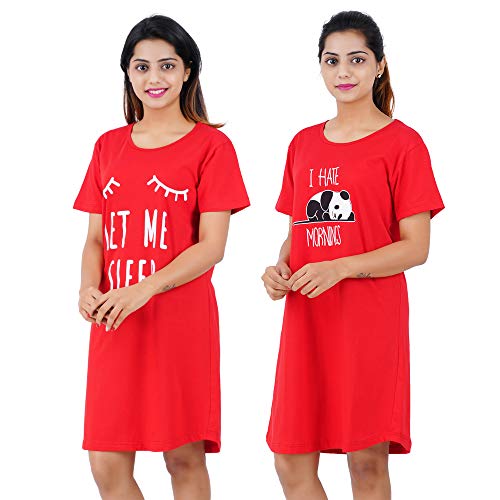 Buy That Trendz Printed Cotton Short Night Dress for Women 2 Pcs Combo Love Black Be Kind Navy