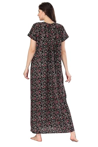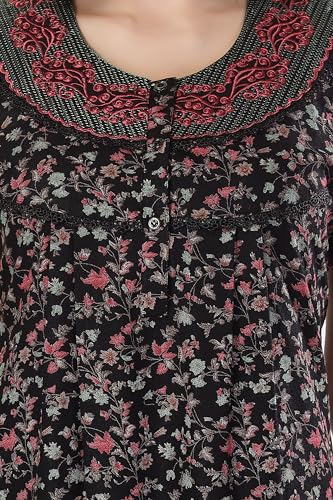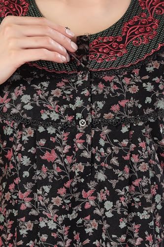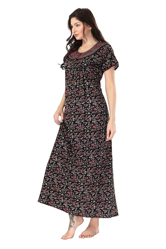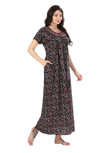 9shines Label Women's Cotton Nighty Maxi Gown - Stylish Long Dress with Front Open Buttons, Heavy Embroidery, and Side Pocket for Comfortable (4293 PV)