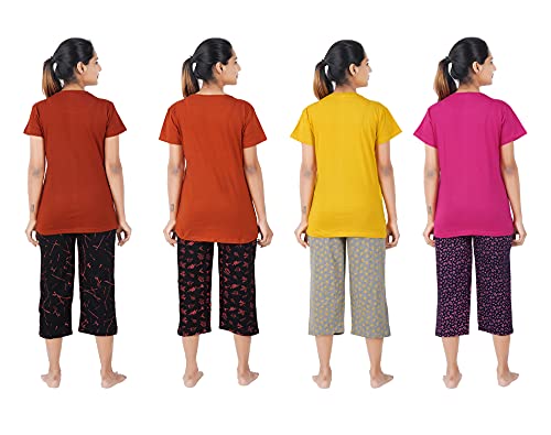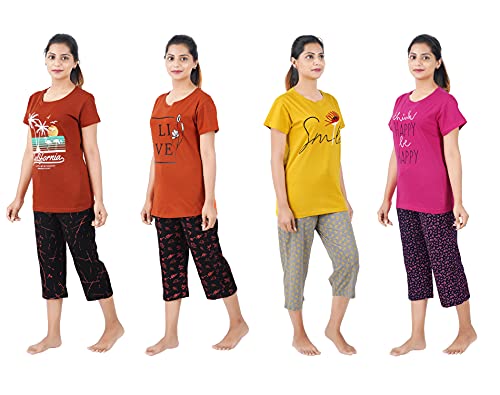 ZEYO Women's Cotton Heart Printed Night Suit set of Shirt & Pajama Set 5152