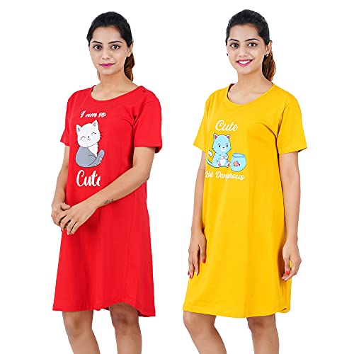 Real Basics Women's Cotton Printed Knee Length Nightdress