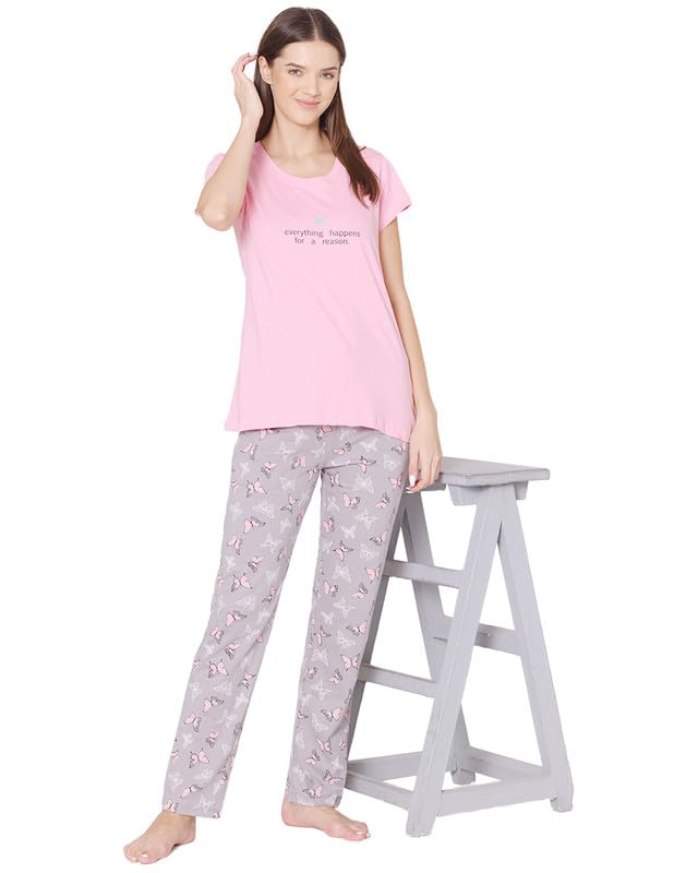 Duchess Women's Cotton Blend Solid Long Length Night Suit Set