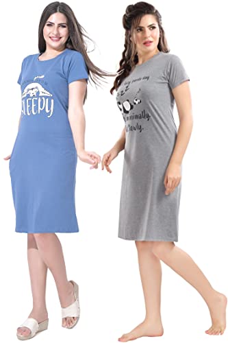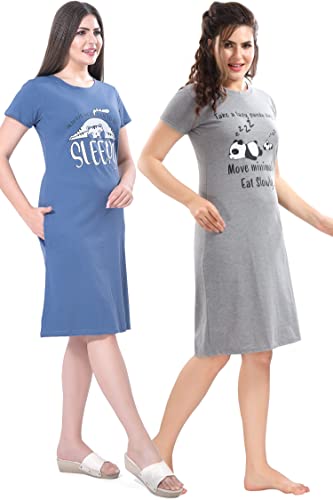 Fflirtygo Women's Cotton Printed Above Knee Nightdress