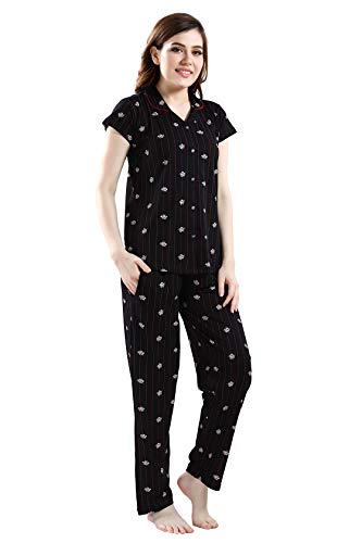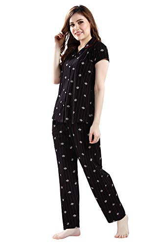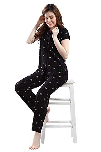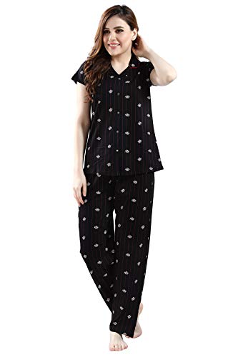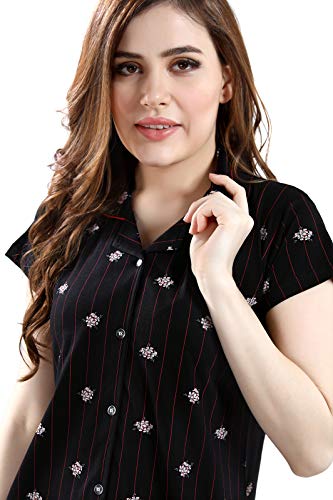 White Moon Women Night Dress Printed Knee Length Short Sleeves Night Dresses for Women/Cotton Nighty (Pack of 2)
