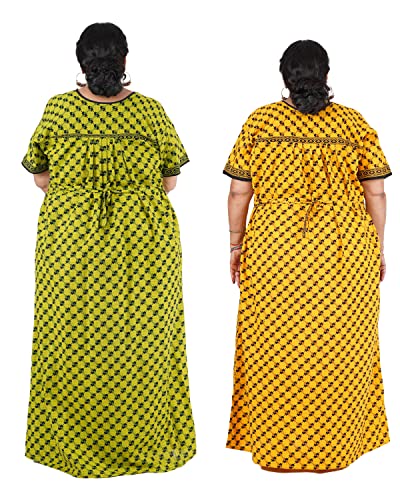 White Moon Women Night Dress Printed Knee Length Short Sleeves Night Dresses for Women/Cotton Nighty (Pack of 2)