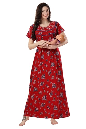 NIHSAMAH Cotton Nighty for Women — Printed Stylish Night Gown, Comfortable Sleepwear Long Nightwear, Maxi