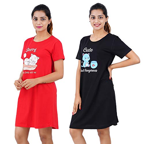 NIHSAMAH Cotton Nighty for Women — Combo of 2 Premium Printed Long Cotton Night Gown | Comfortable & Fancy Sleepwear/Nightwear/Maxi Dress