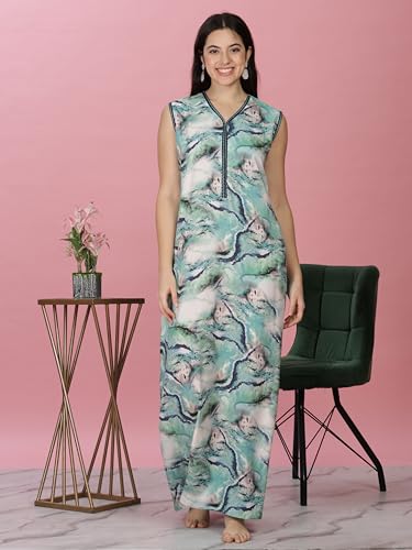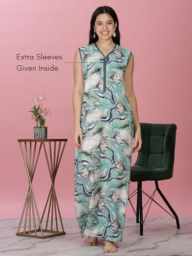 Ravaiyaa - Attitude is everything Women's Cotton Printed Maxi Kaftan Sleepwear Nightdress Gown Maxi Free Size Sleep Dress Caftan (XXXXL, Black Beige Paisley)
