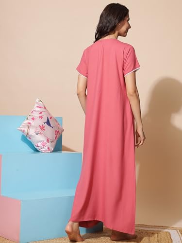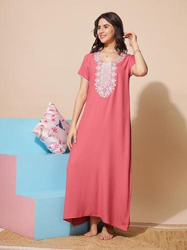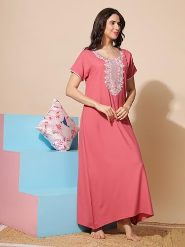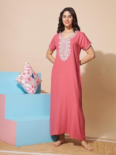 Soulemo Women's Cotton, Rayon & Polyester Printed A- Line Maxi Nighty (Alpine) 901