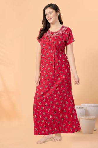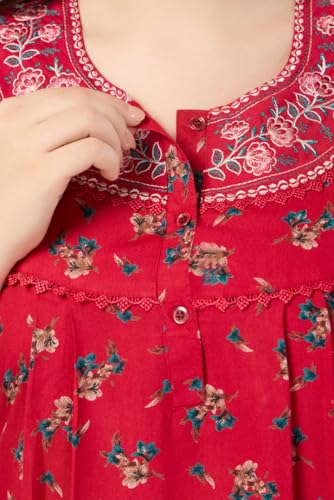 Sweet Dreams Women Coral Graphic Round Neck Half Sleeve Cotton Short Nighty