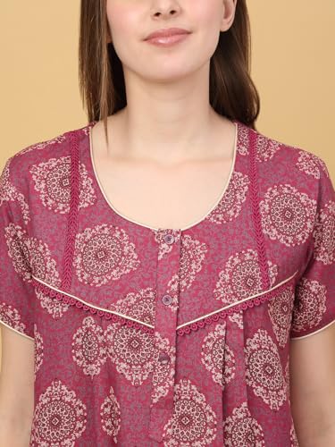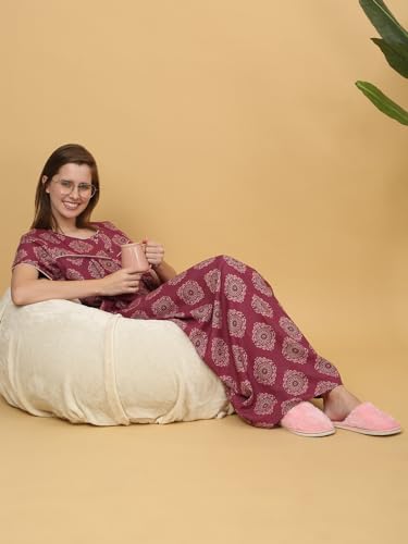 ZEYO Women's Cotton Tringle Printed Relaxed Night Suit Set Of Top & Pyjama 1166
