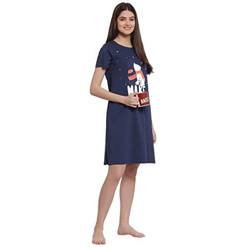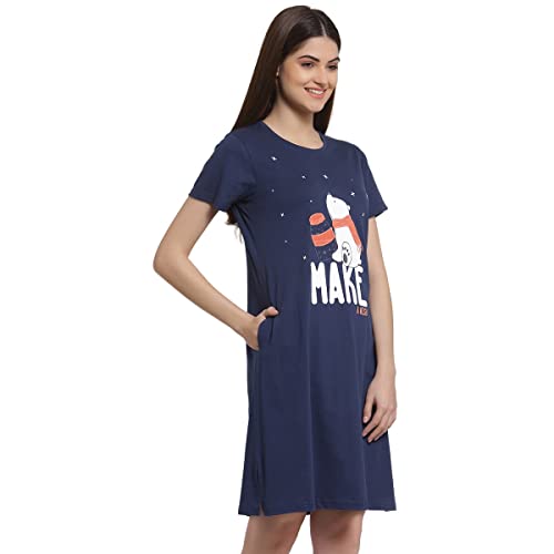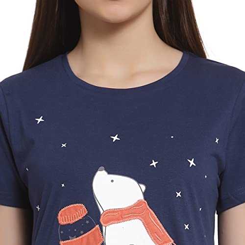 LABEL MY Women's Nightsuit Set| Comfortable Cotton Nightwear | Round Neck Top with Three Buttons | Pyjama with Side Pockets, Elastic Waist & Drawstring