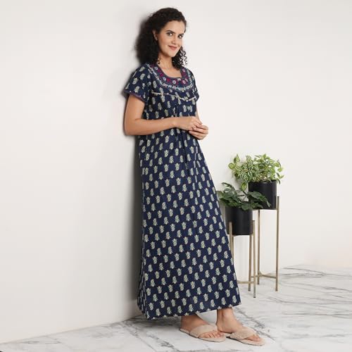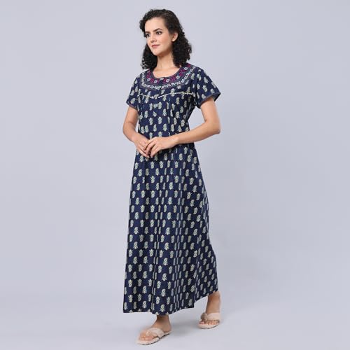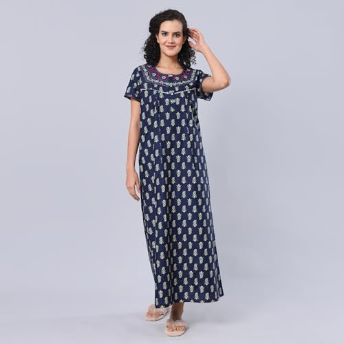 Rylie Nighties Women's Hosiery Embellished Maxi Nighty Slip Hosiery Cotton Full Length Camisole, Long Inner wear Petticoat-Suit Slip Long Gown Maxi Combo.