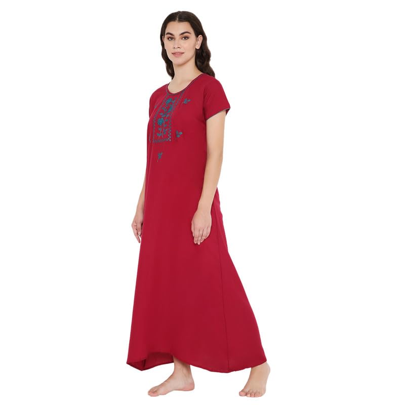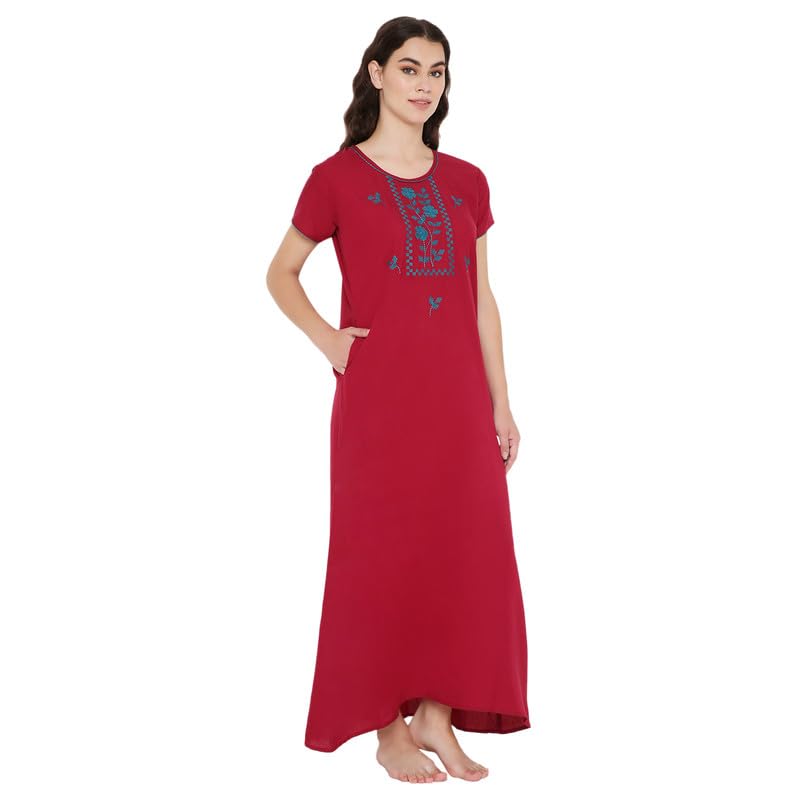 kasya Cotton Nighty for Women with Pockets | Premium Beige Printed Long Cotton Night Gown | Comfortable Maxi Dress | Fancy Sleepwear/Nightwear/Night Gown
