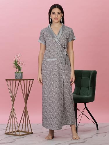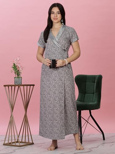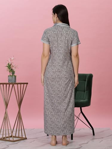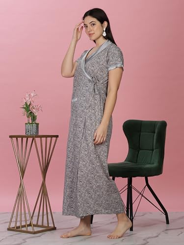 9shines Label Premium Rayon Designer Nighty with Embroidery 3/4th Sleeves | Night Gown | Soft Rayon Maxi Length Nightdress for Women (Rayon Solid Colours)
