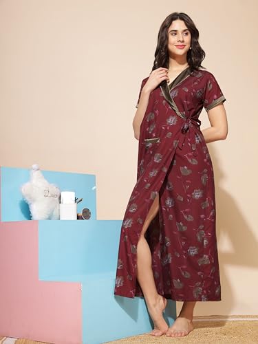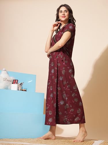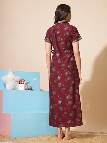 9shines Label Premium Rayon Floral Print Designer Nighty | Night Gown | Soft Rayon Maxi Length Nightdress for Women(Rayon Nighty Collection)
