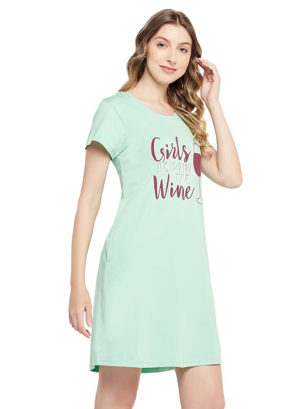 Clovia Women's Cotton Graphic and Text Print Top & Chic Basic Shorts Set