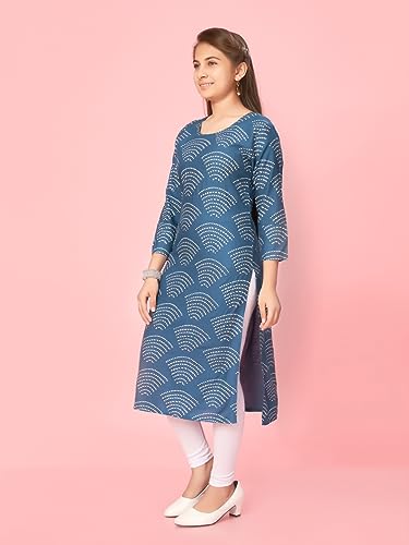 A.T.U.N. (ALL THINGS UBER NICE) A.T.U.N. Girls Printed Angrakha Pure Cotton Kurta with Leggings & Dupatta