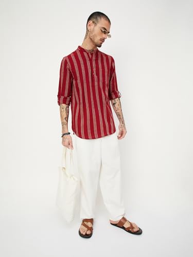 Manyavar Men's Cotton Blend Digital Print Long Kurta (1pc)