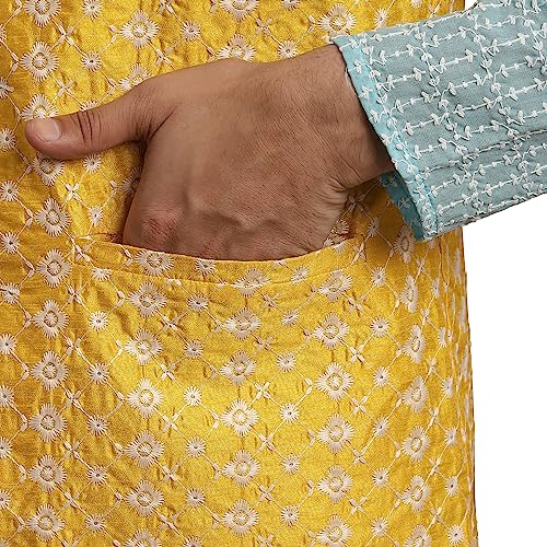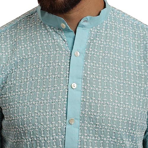 VASTRAMAY Mens Cotton Linen Kurta - Timeless Elegance for Eid & Holi Festivals | Solid Plain Weave Full Sleeves Mandarin Collar Kurta | Classic Design, Premium Comfort, and Versatile Style for Events