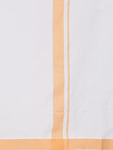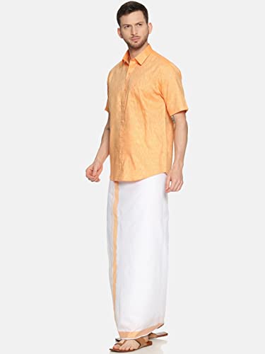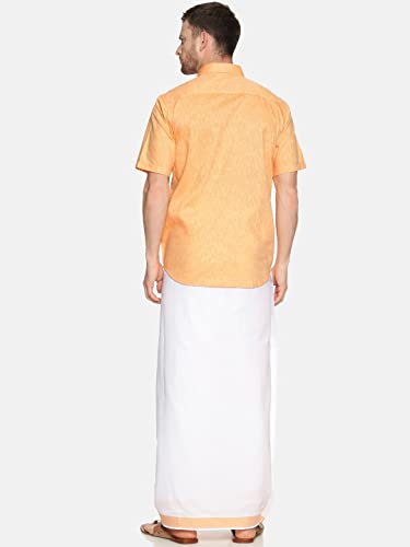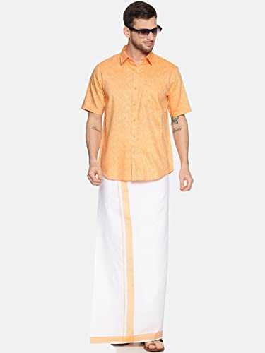 RAMRAJ COTTTON traditional full sleeve shirt and 3/4 inch gold jari border dhoti for men with Towel