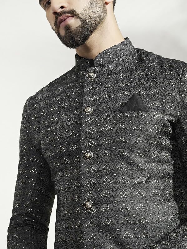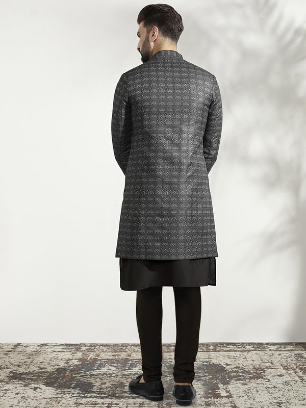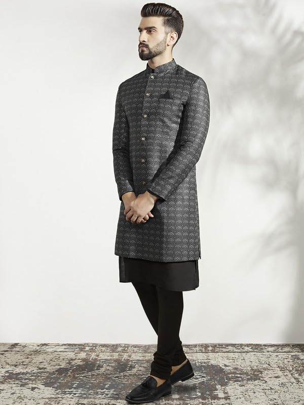 Royal Kurta Mens Jacquard Silk Indowestern Mid Length Sherwani with Harem Pants