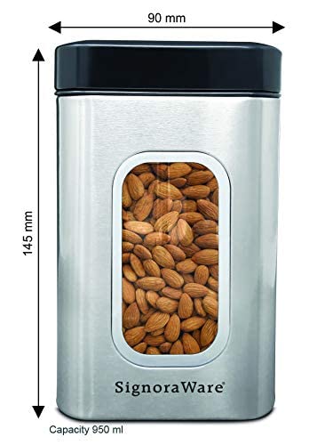 Borosil Classic 1.2 L Storage Jars with Wooden Lid, for Storing Condiments, Nuts, Mukhwaas