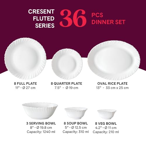 Larah by Borosil - Tiara Series, Pebbles, 19 Pcs, Opalware Dinner Set, White