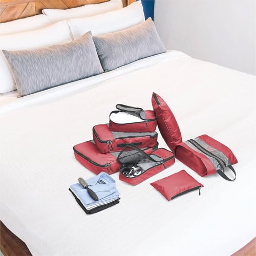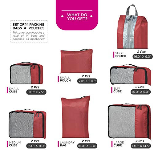 FATMUG Polyester Packing Cubes Travel Bag Organiser Set Of 10(1L,2M,2S,1Slim, 2 Shoe & 2 Laundry Pouch)-Orange