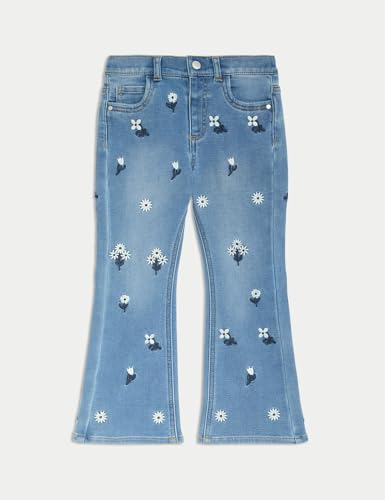 Cherry Crumble Light Denim Blue Dyed/Washed Denim Casual Wear Wide Leg Ripped Summer Jeans for Girls