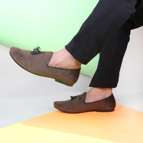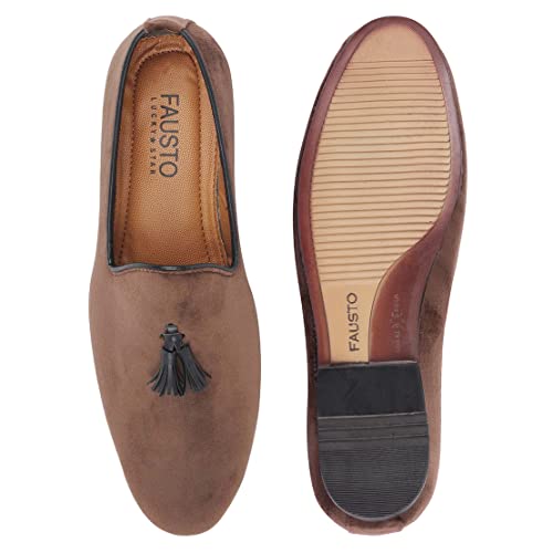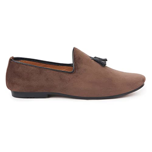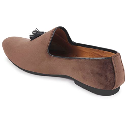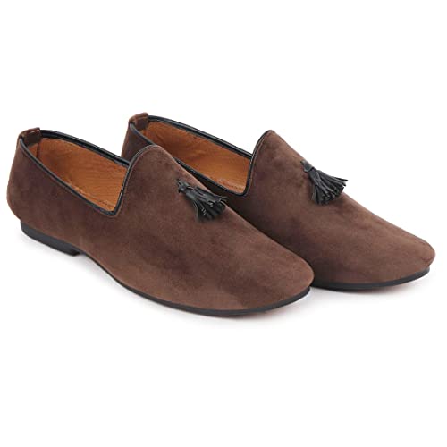 LOUIS STITCH Men's Brunette Brown Italian Suede Leather Moccasin Loafer | Designer Tassel Stylish Casual Shoes for Men (SXSUMCTA)