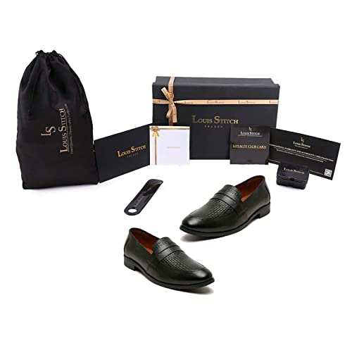LOUIS STITCH Men's Loafers Casual Shoes | Italian Suede Leather Moccasins | Slip-On for Business, Formal, Parties, Everyday Wear (LSITSUPBB)
