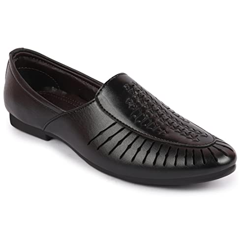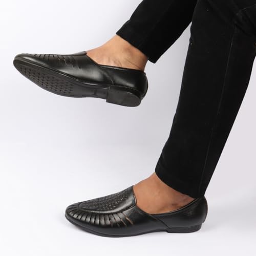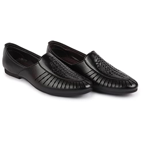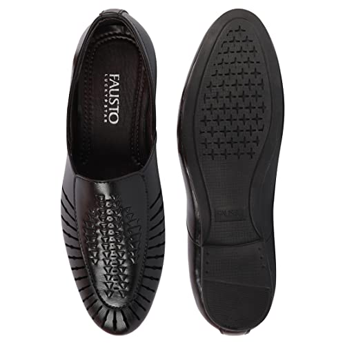 FAUSTO Men Embroidery Sequin Ethnic Slip On Juttis and Mojaris for Wedding|Festive Party Slip-On Kurta Shoe|Traditional Sherwani Shoes