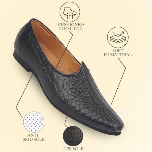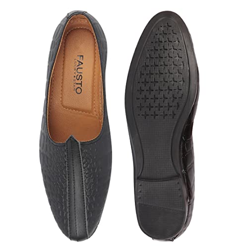 FAUSTO Men's Festive Embroidered Ethnic Slip On Juttis and Mojaris for Wedding|9 Colors|1-14UK Small Plus Sizes|Traditional Kurtas & Sherwani Shoe