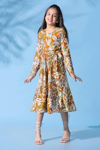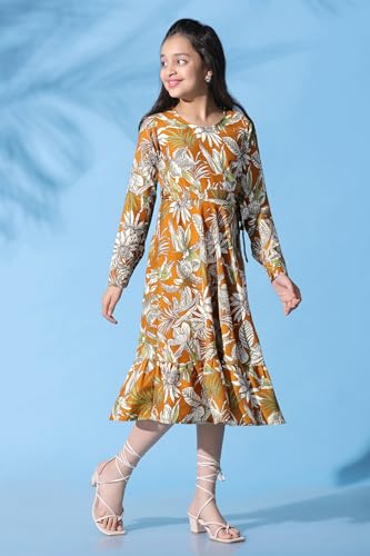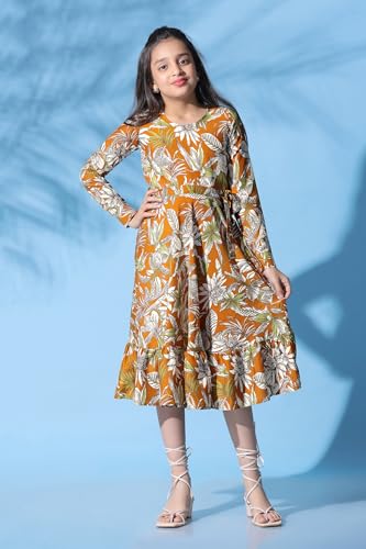 Naughty Ninos Girls Red Floral Printed Fit & Flared Dress