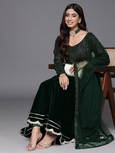 Miss Ethnik Women's Faux Georgette Semi Stitched Top With Stitched Faux Georgette Bottom and Net Dupatta Embroidered Straight Kurta Dress Material (Pakistani Salwar Suit) (ME-P-1026)