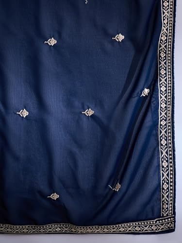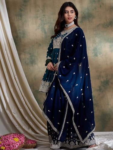 Libas Purple Embroidered Silk Blend Straight Kurta With Trousers & Dupatta