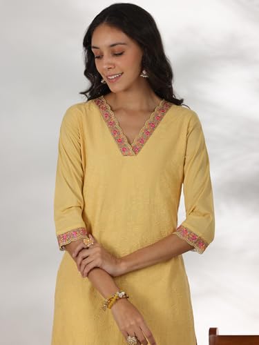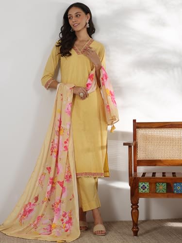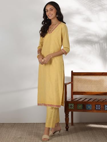 Janasya Women'S Chanderi Silk Embroidered Straight Kurta Set