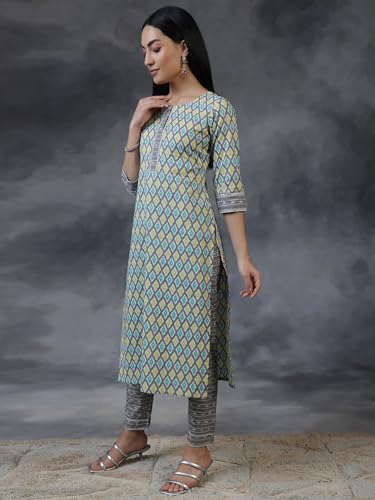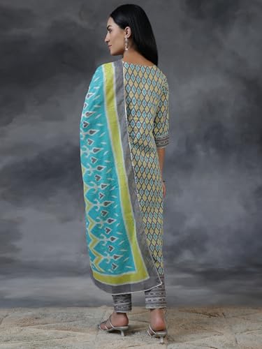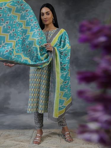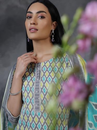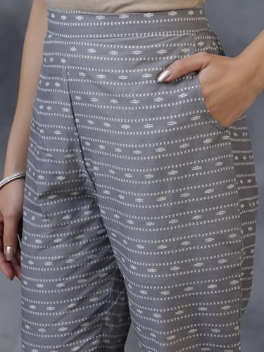 Libas Pink Printed Cotton A-Line Kurta With Palazzos & Dupatta