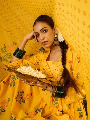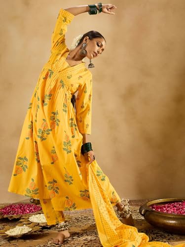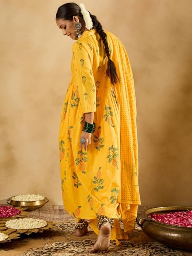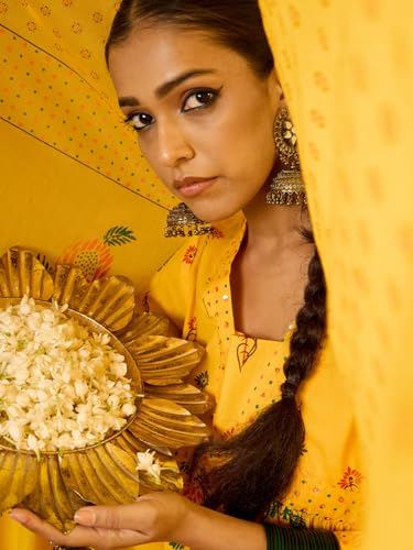 INDO ERA Women's Embroidered Silk Blend A-Line Kurta Trouser with Dupatta Set