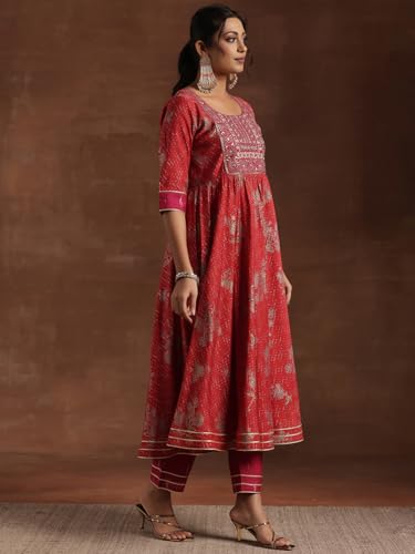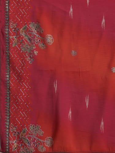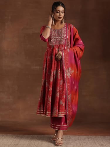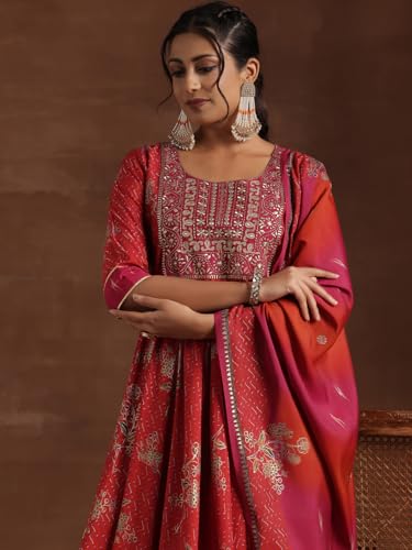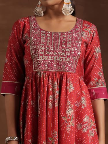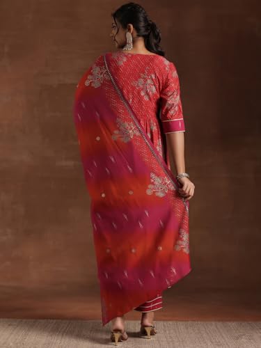 Libas Maroon Yoke Design Silk Blend Straight Kurta With Palazzos & Dupatta