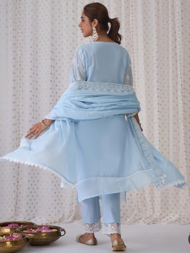 Libas Burgundy Embroidered Silk Blend Straight Kurta With Trousers & Dupatta