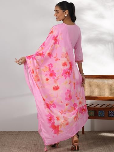 Janasya Women's Dark Teal Blue Georgette Digital Floral Printed Kurta with Palazzo and Dupatta