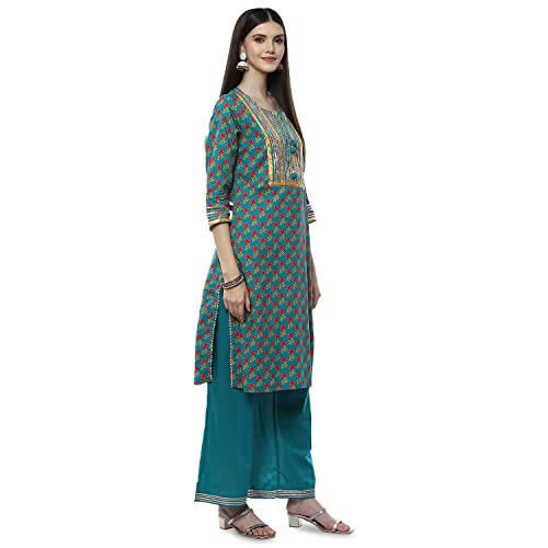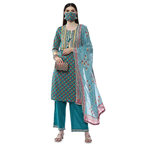 INDO ERA Women's Viscose Embroidered Straight Kurta With Palazzo & Dupatta Set (Rrrrr9625)